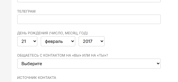 - Можно указать дату без года и с годом. Во втором случае у клиента будет отображаться его возраст;